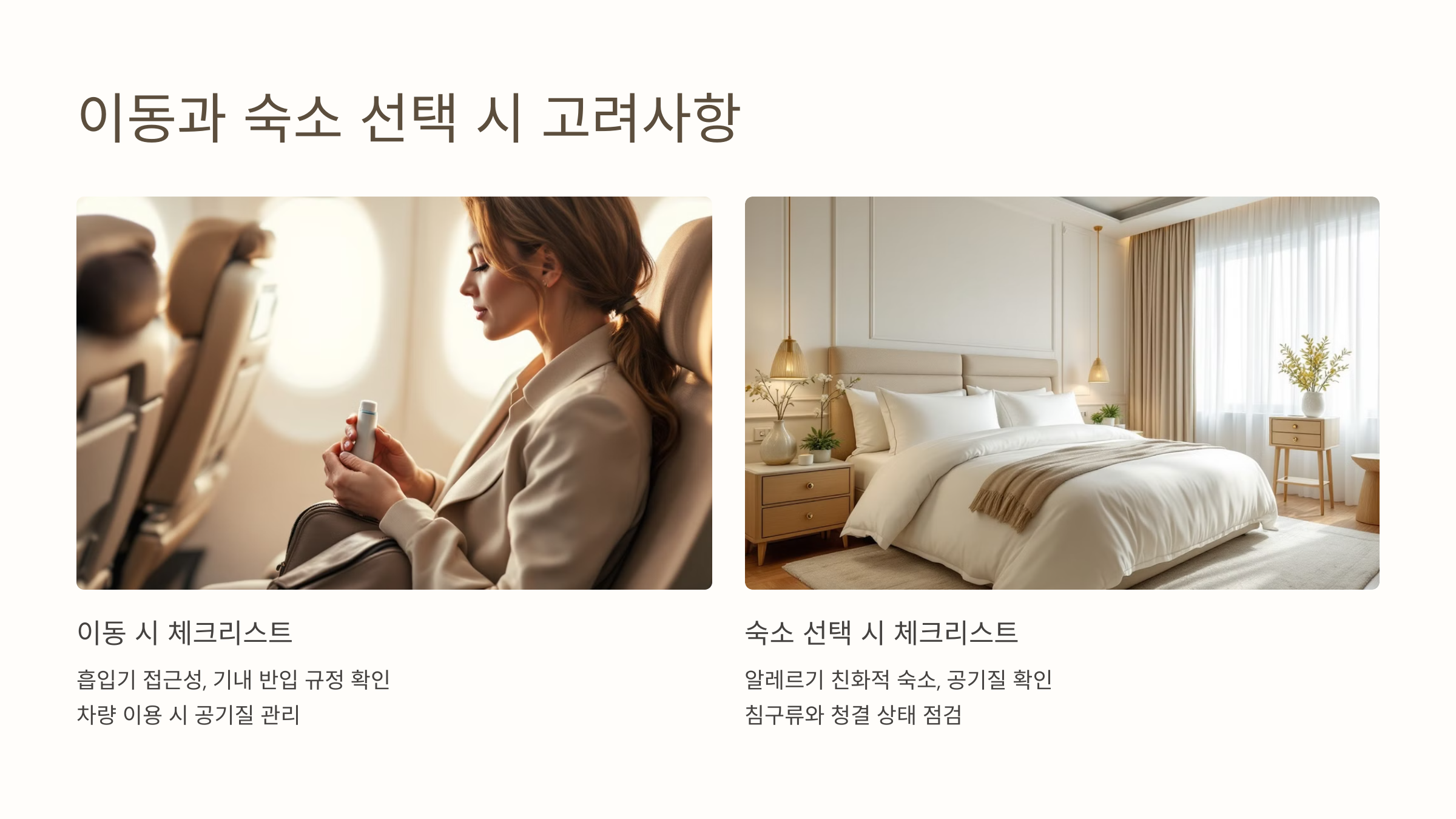 여행 중 편안한 이동과 안전한 숙소 환경은 천식 관리의 핵심입니다.
