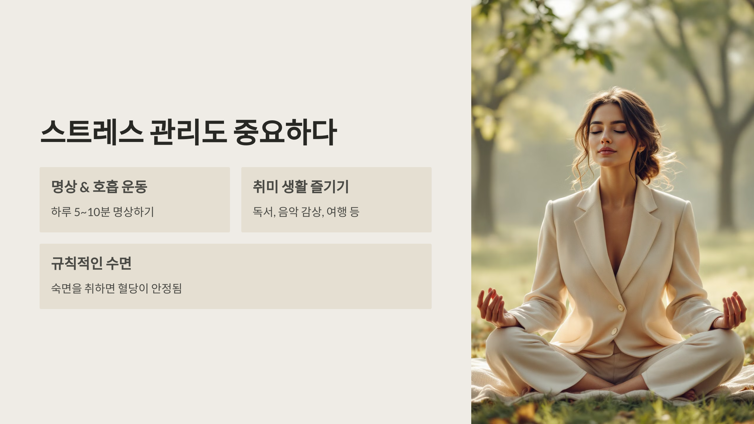 ✅ 규칙적인 수면 – 숙면을 취하면 혈당이 안정됩니다.