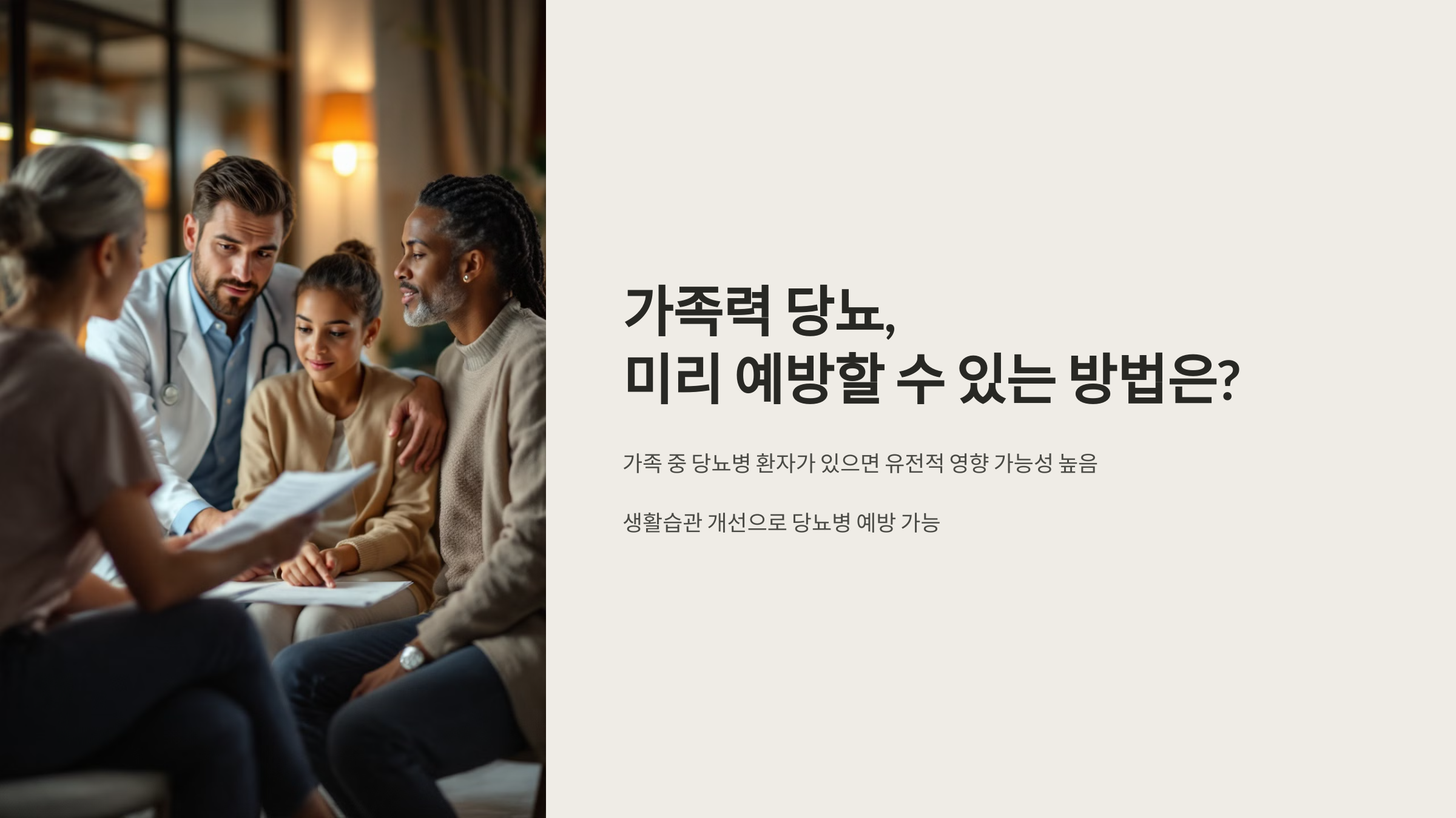 태그: 가족력당뇨, 당뇨예방, 혈당관리, 건강한식습관, 운동습관, 스트레스관리, 수면관리, 유전적요인, 당뇨검진, 생활습관개선