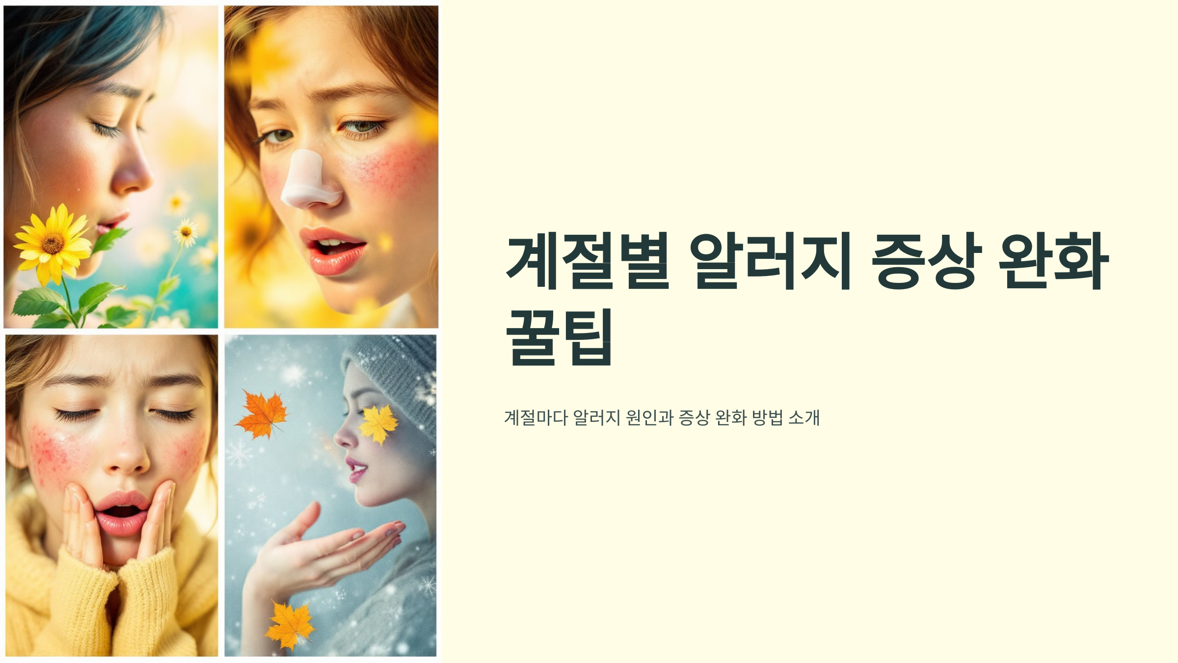 계절이 바뀔 때마다 찾아오는 알러지 증상, 정말 고통스럽죠? 🤧 하지만 계절별 알러지 원인을 알고 적절히 관리하면 증상을 효과적으로 완화할 수 있습니다. 오늘은 계절마다 알러지를 유발하는 요인과 증상을 완화할 수 있는 꿀팁을 알려드릴게요! 🌟