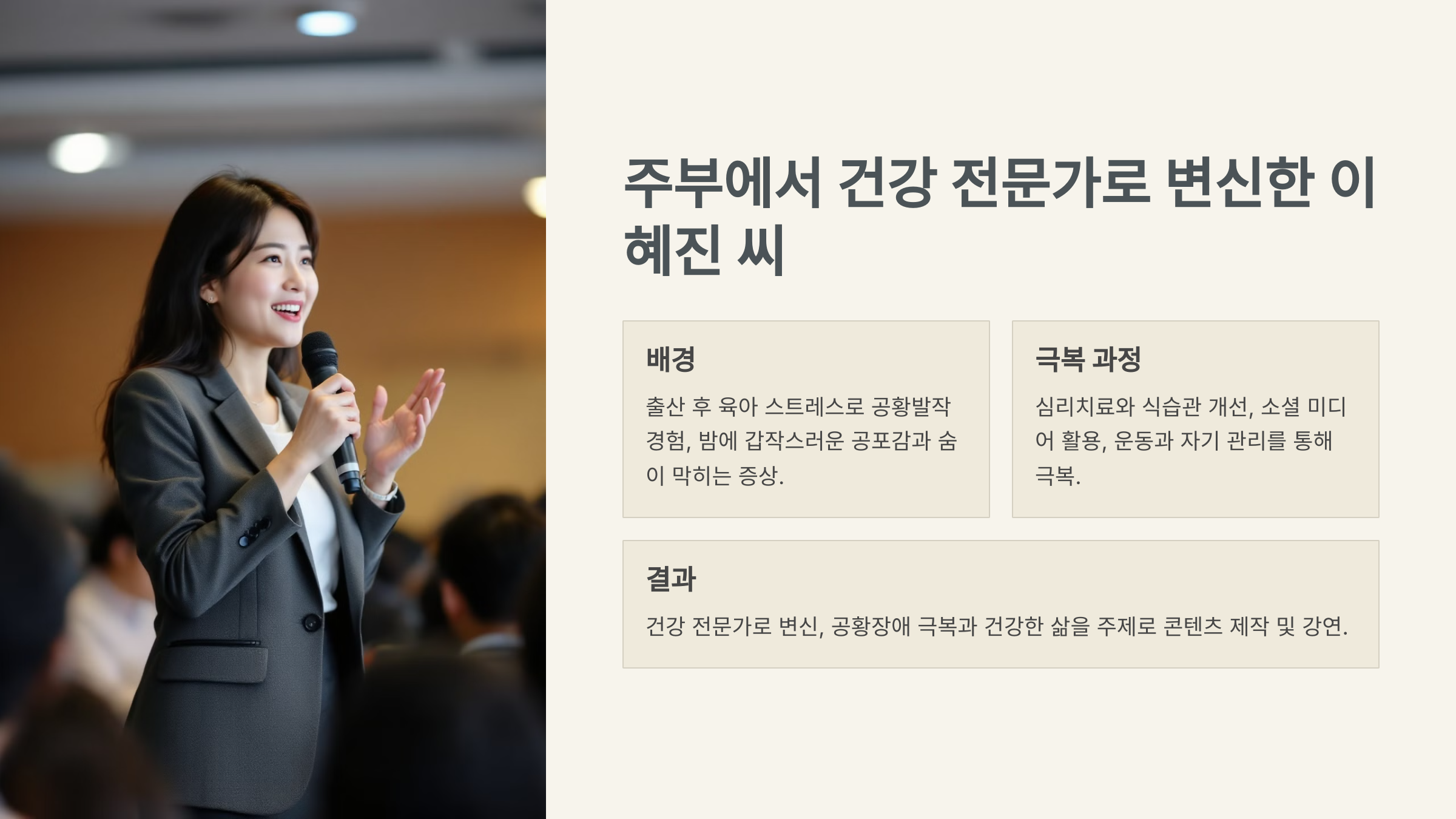 3️⃣ 사례 3: 주부에서 건강 전문가로 변신한 이혜진 씨 🏡👩⚕️