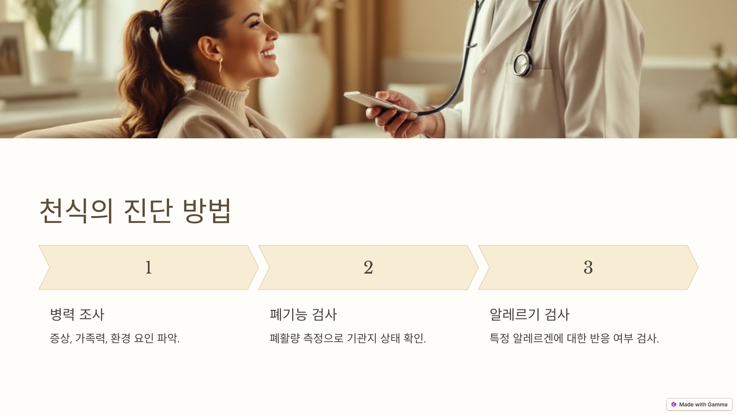 천식은 두려운 병이 아니라 함께 살아가는 병입니다. 꾸준히 관리하면서 더 나은 삶을 만들어보세요! 🌟
