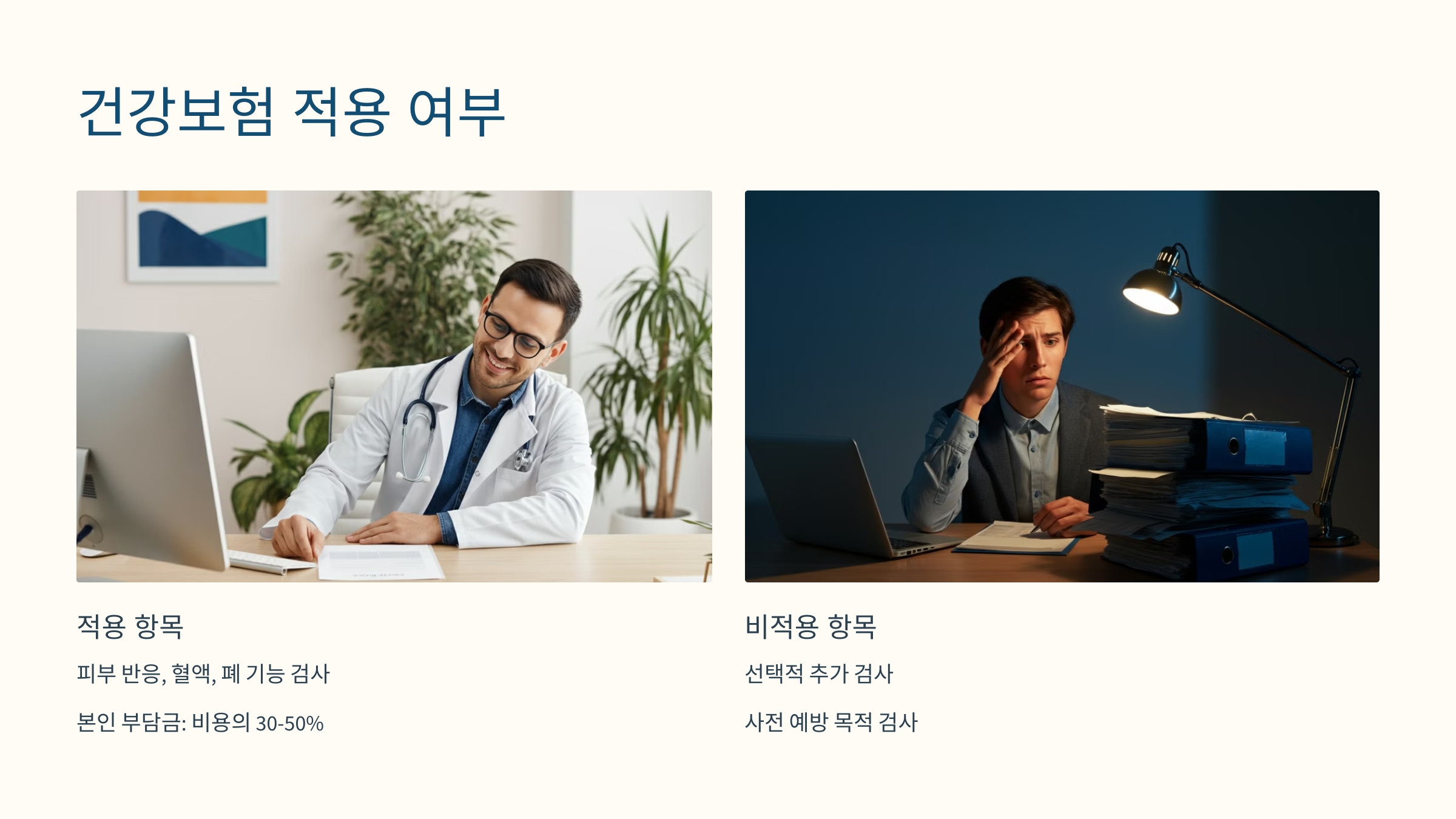 - 선택적인 추가 검사: 비보험 항목은 전액 본인 부담.