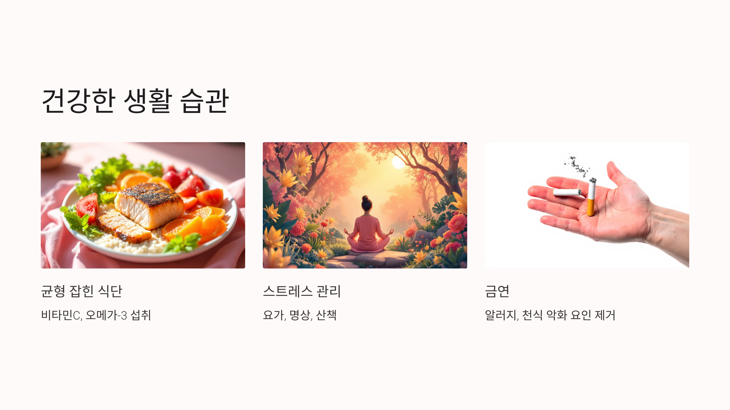 - 비타민C, 오메가-3 지방산이 풍부한 음식을 섭취해 면역력을 강화하세요.