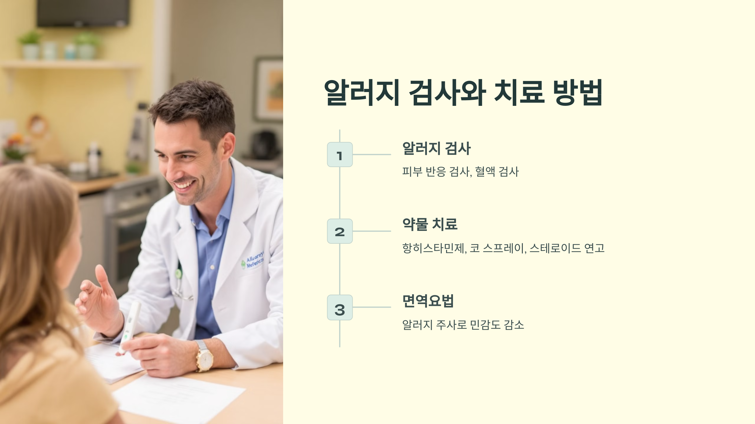 - 병원에서 피부 반응 검사나 혈액 검사로 정확한 알러겐을 파악하세요.