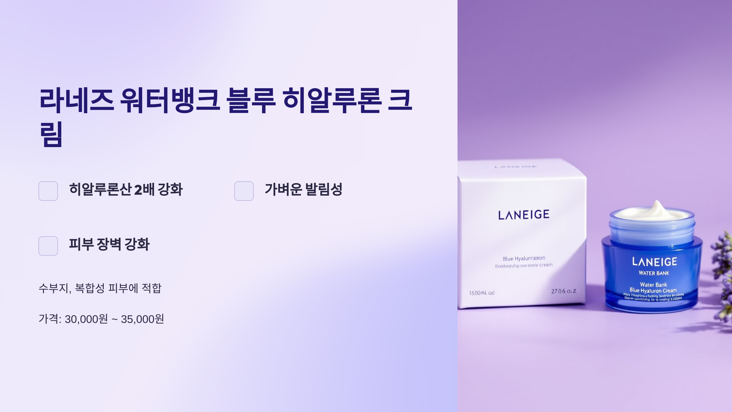 1. 라네즈 워터뱅크 블루 히알루론 크림