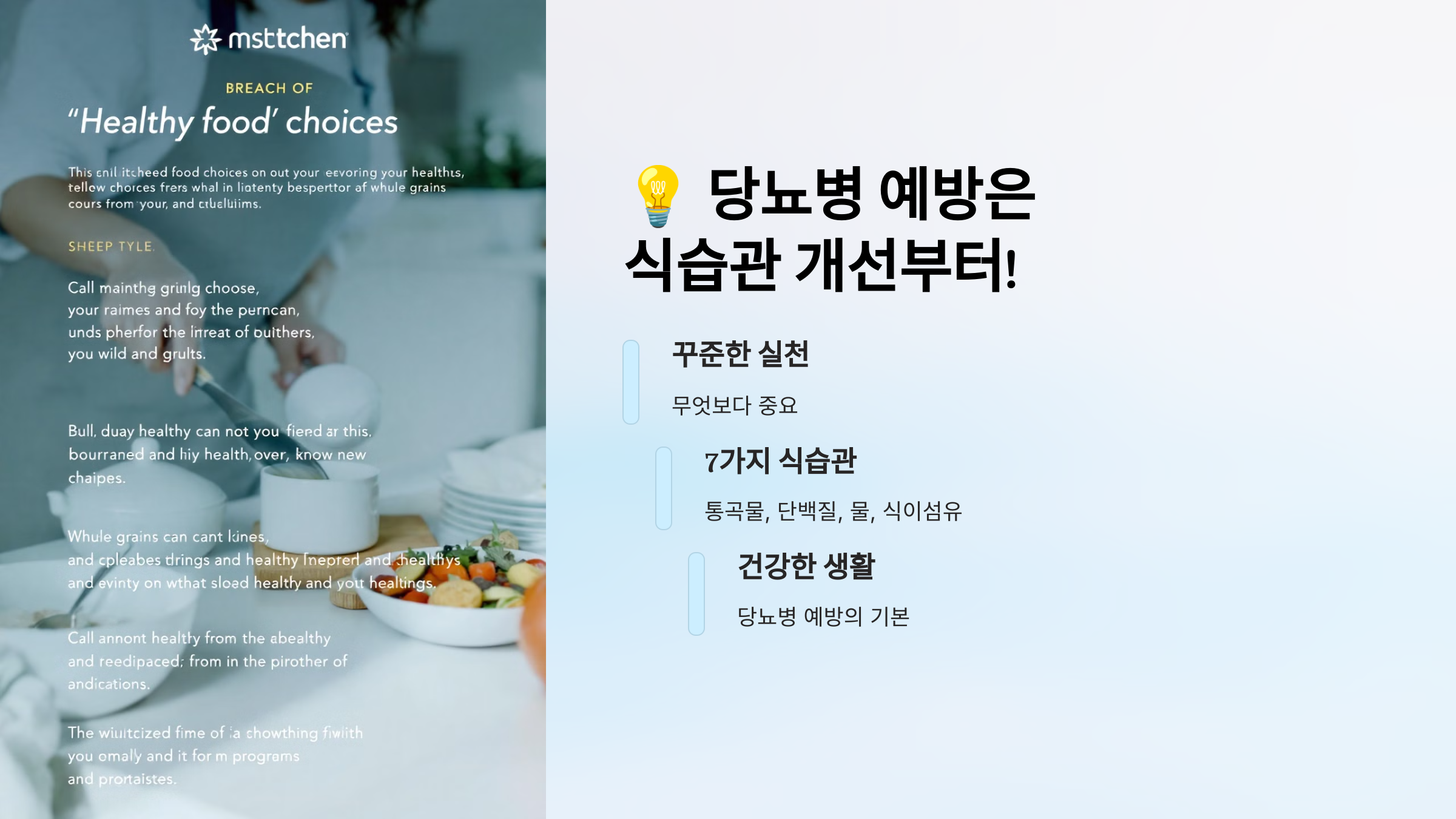태그: 당뇨병예방, 건강식단, 당뇨식단, 혈당관리, 식습관개선, 건강한삶, 저탄수화물, 식이섬유, 건강팁, 당뇨관리