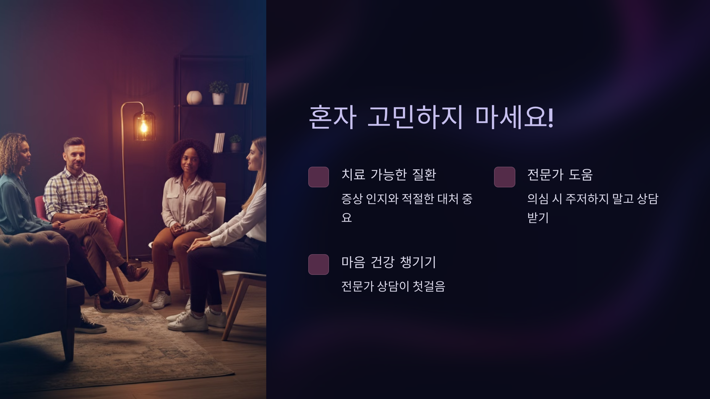 👉 지금 바로 마음 건강을 챙기세요. 전문가 상담이 당신의 첫걸음이 될 수 있습니다!